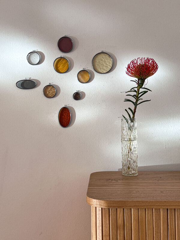 Alles wordt met de hand bewerkt, daardoor kan de kleur-vorm-textuur combinatie afwijken van de foto. De diameter van de Drips varieert ongeveer tussen 3 en 9 centimeter.