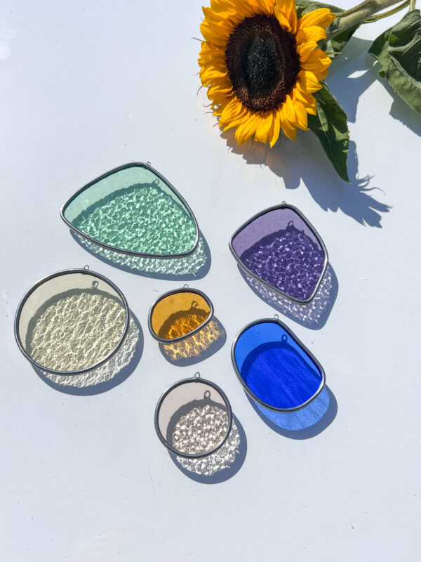 Ontdek de unieke set: Keva. Een samenstelling van 6 Drips in de kleurencombinatie zoals afgebeeld op de foto. Elk van deze Drips is voorzien van een handig oogje, waardoor je ze moeiteloos aan de muur of aan nylondraad kunt bevestigen, waardoor ze een betoverende uitstraling krijgen voor elk raam of aan een wand.