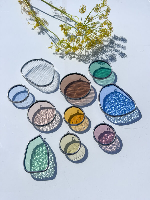 Ontdek de unieke set: Nordyck. Een samenstelling van 10 Drips in de kleurencombinatie zoals afgebeeld op de foto. Elk van deze Drips is voorzien van een handig oogje, waardoor je ze moeiteloos aan de muur of aan nylondraad kunt bevestigen, waardoor ze een betoverende uitstraling krijgen voor elk raam of aan een wand.