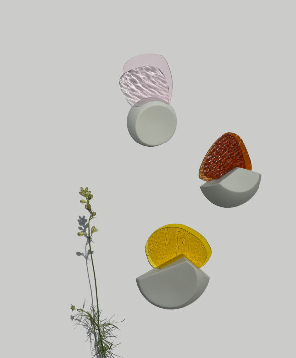 Fie 3 is een combinatie van drie wandobjecten van porselein, gecombineerd met glas. De kleurencombinatie wordt geleverd zoals op de foto. In het porselein zit een strakke snede, waar het glas in past. Daarnaast bepaal je ook bij dit product de compositie.