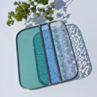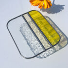 Het was één van de eerste ontwerpen van De Glazerij en oogt stijlvol. De kleuren glas kun je zelf bepalen, zodat ze passen in jouw interieur. Schrijf je wensen in onderstaand vak, je ontvangt binnen twee weken een voorstel met passende kleuren glas. Afmetingen 20 x 15 cm.