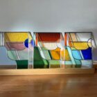 Hask. Een blijvende favoriet, ontworpen in 2019. Op de foto in afmetingen 30 x 40cm. Beschrijf onderstaand de gewenste kleuren. Alle kleuren zijn mogelijk. Na ongeveer drie weken krijg je een telefoontje en worden de kleuren glas doorgesproken. Op basis hiervan krijg je een voorstel met passende kleuren glas toegestuurd.